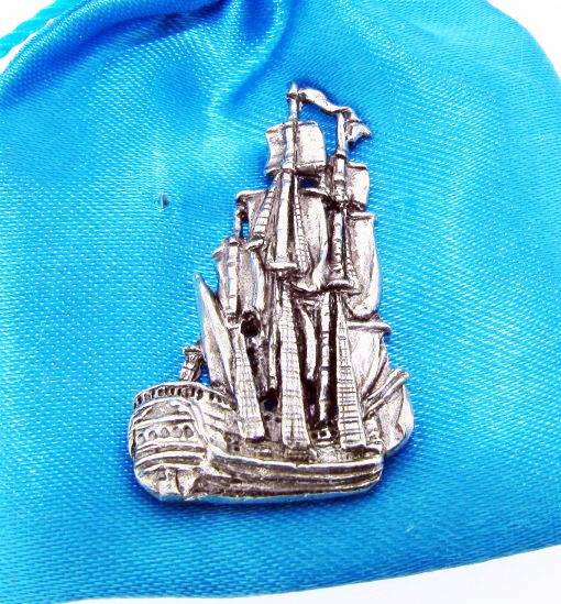 This highly detailed ship measures 2.3cm wide by 3.9cm tall, and comes supplied in a black velvet gift bag.